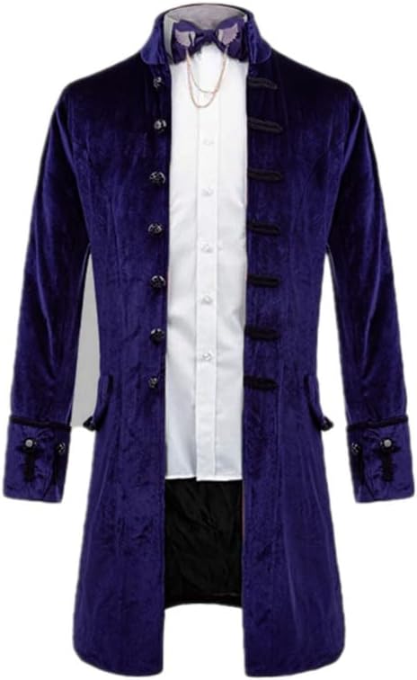 Mens Retro Velvet Victorian Steampunk Long Blazer Jacket Gothic Frock Coat