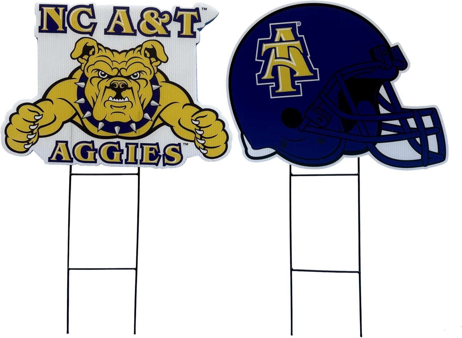 Take your school spirit to the next level with the Officially Licensed Pegasus Sports NCAA 2-Pack Yard Signs — the perfect outdoor statement for the ultimate college sports fan. Each set includes two 11” x 23” officially licensed signs, so you can make an even bigger impact on game day. Whether you place them in the front yard, along the tailgate route, or in your backyard watch party zone, these bold signs feature vibrant team logos and colors that stand out. Built with durable, weather-resistant corrugated plastic and easy-to-install metal H-stakes, they’re ready to stand tall all season long. Two signs. One team. All the pride.