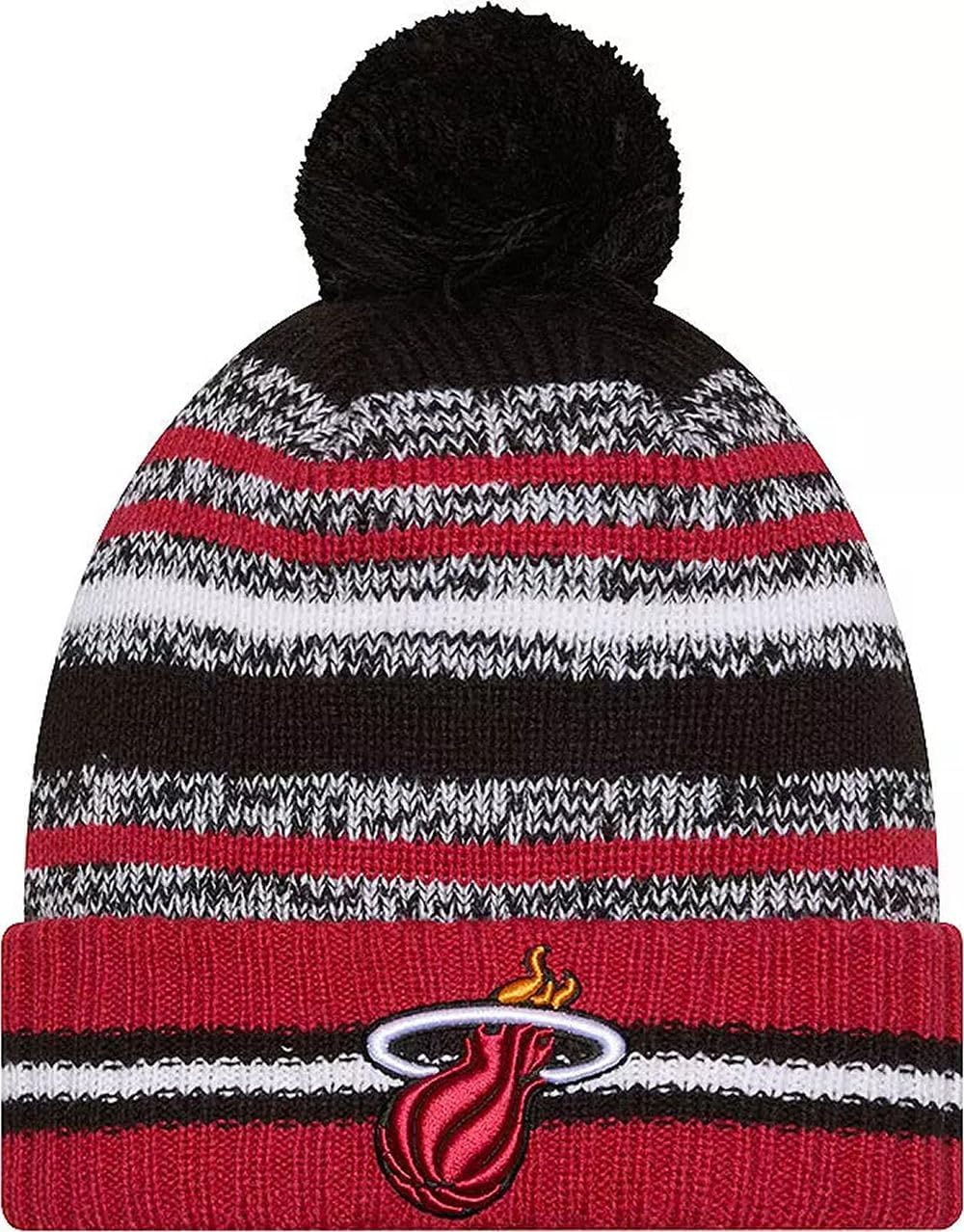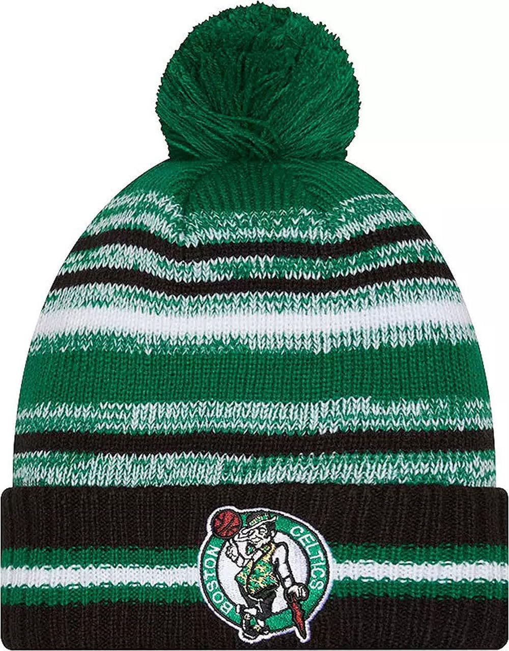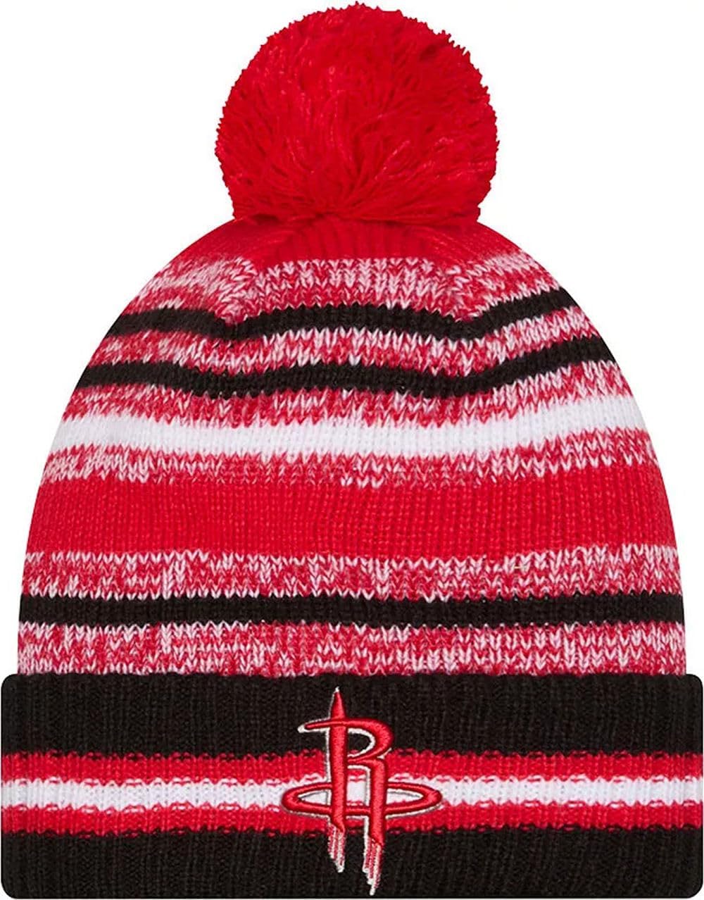 Sport your Favorite College Team Pride, keep warm, and make a fashion statement with this great looking beanie hat with Pom from New Era. This NBA Knit from New Era is a cuffed knit with an embroidered logo at the front, stitched New Era flag at the wearer's left side, and a plush pom at the top.