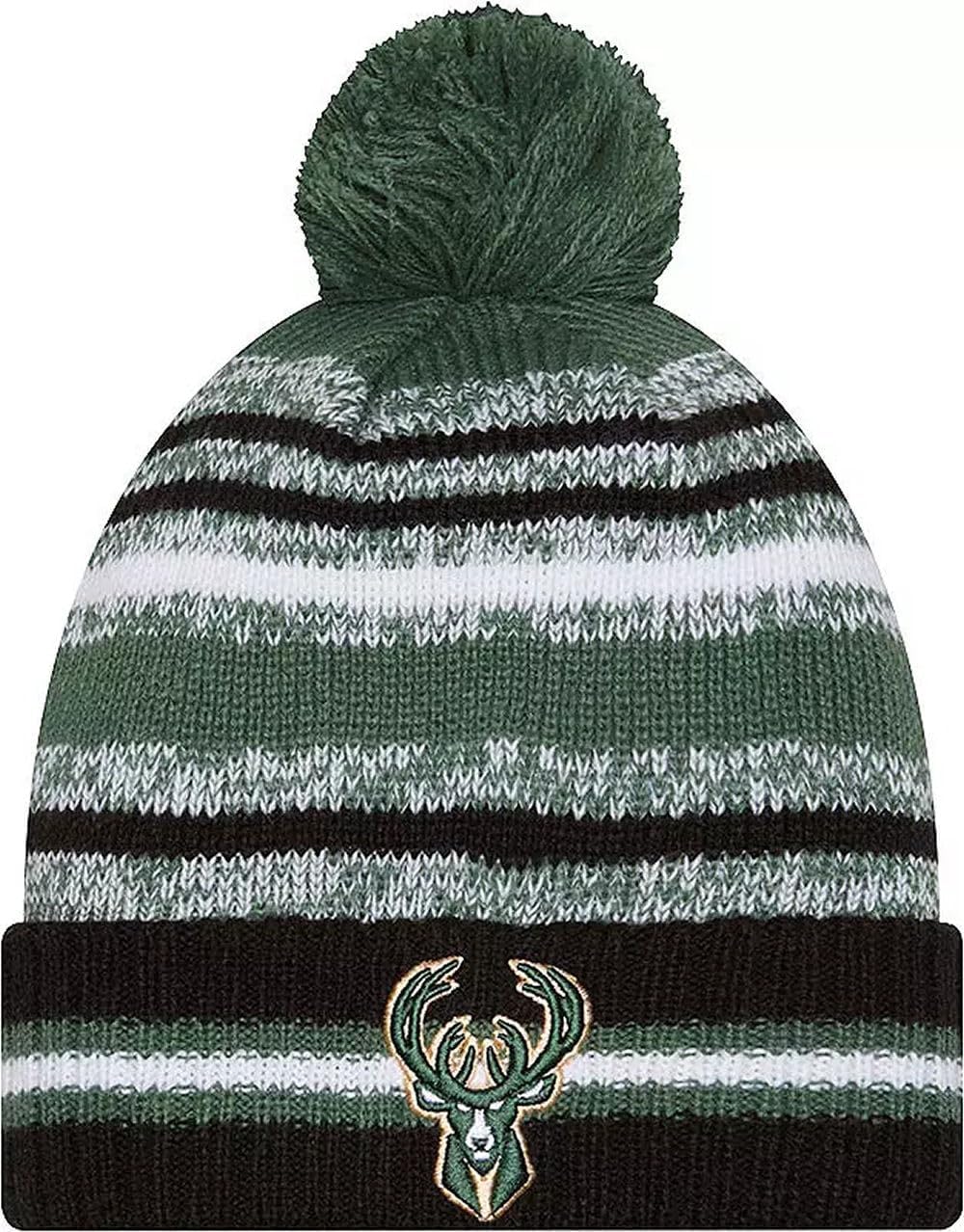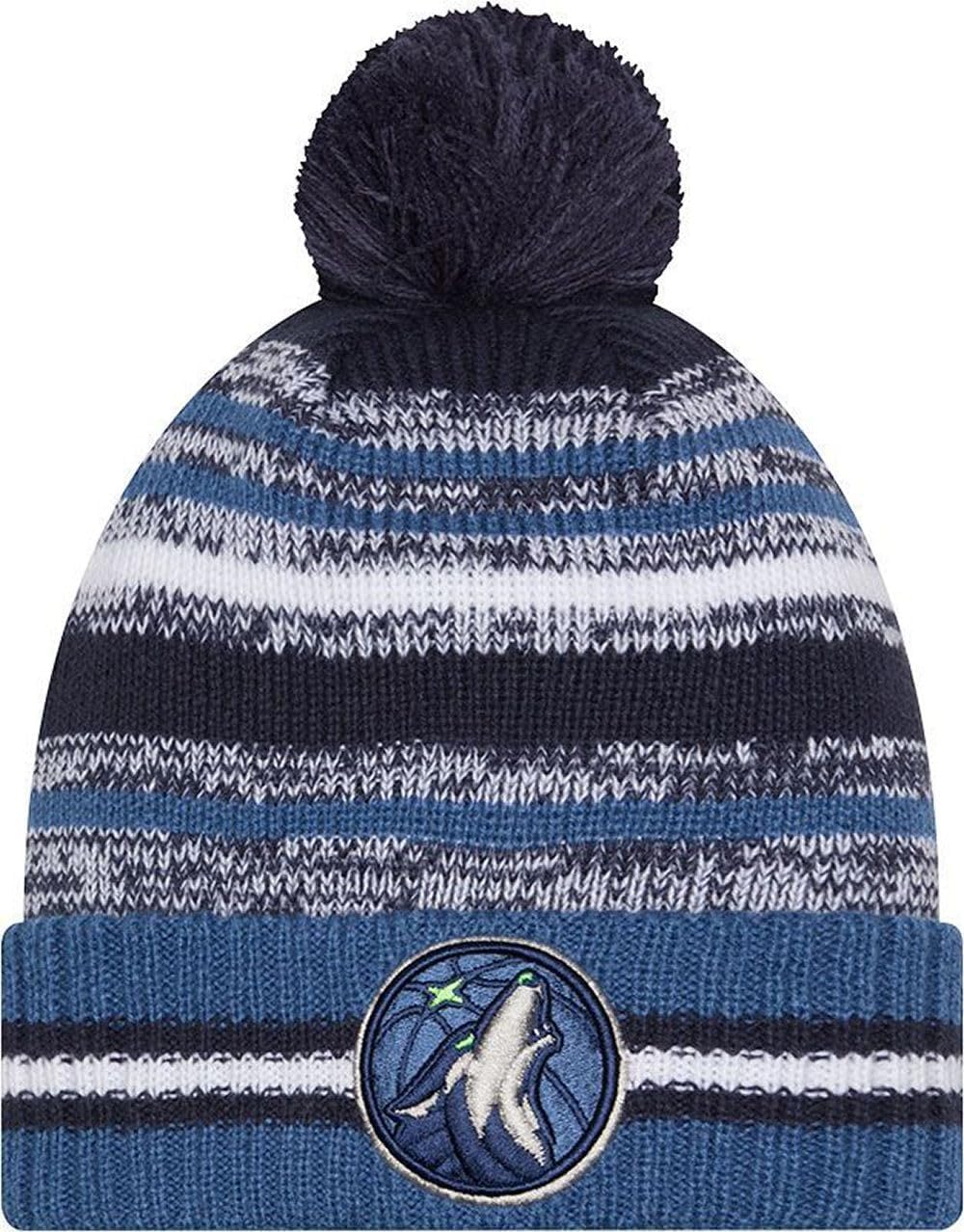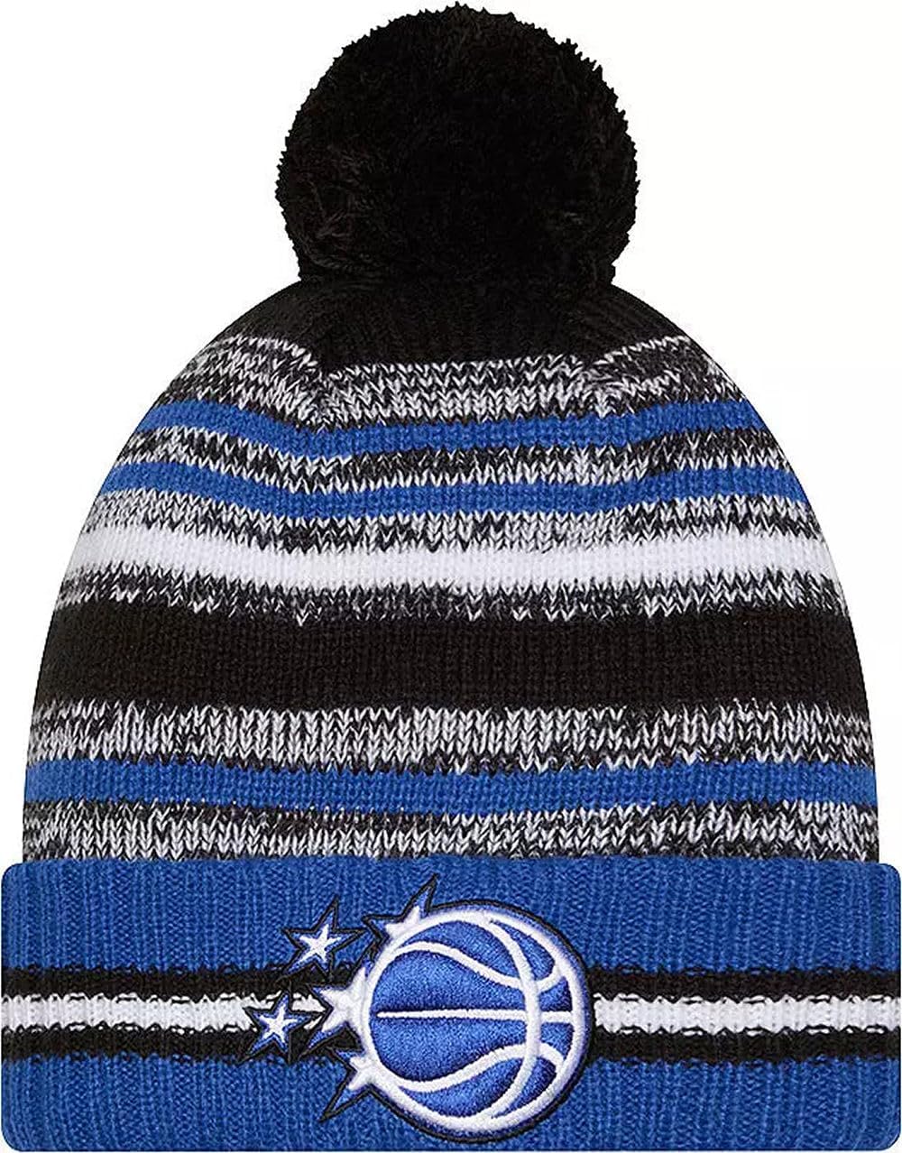 Sport your Favorite College Team Pride, keep warm, and make a fashion statement with this great looking beanie hat with Pom from New Era. This NBA Knit from New Era is a cuffed knit with an embroidered logo at the front, stitched New Era flag at the wearer's left side, and a plush pom at the top.