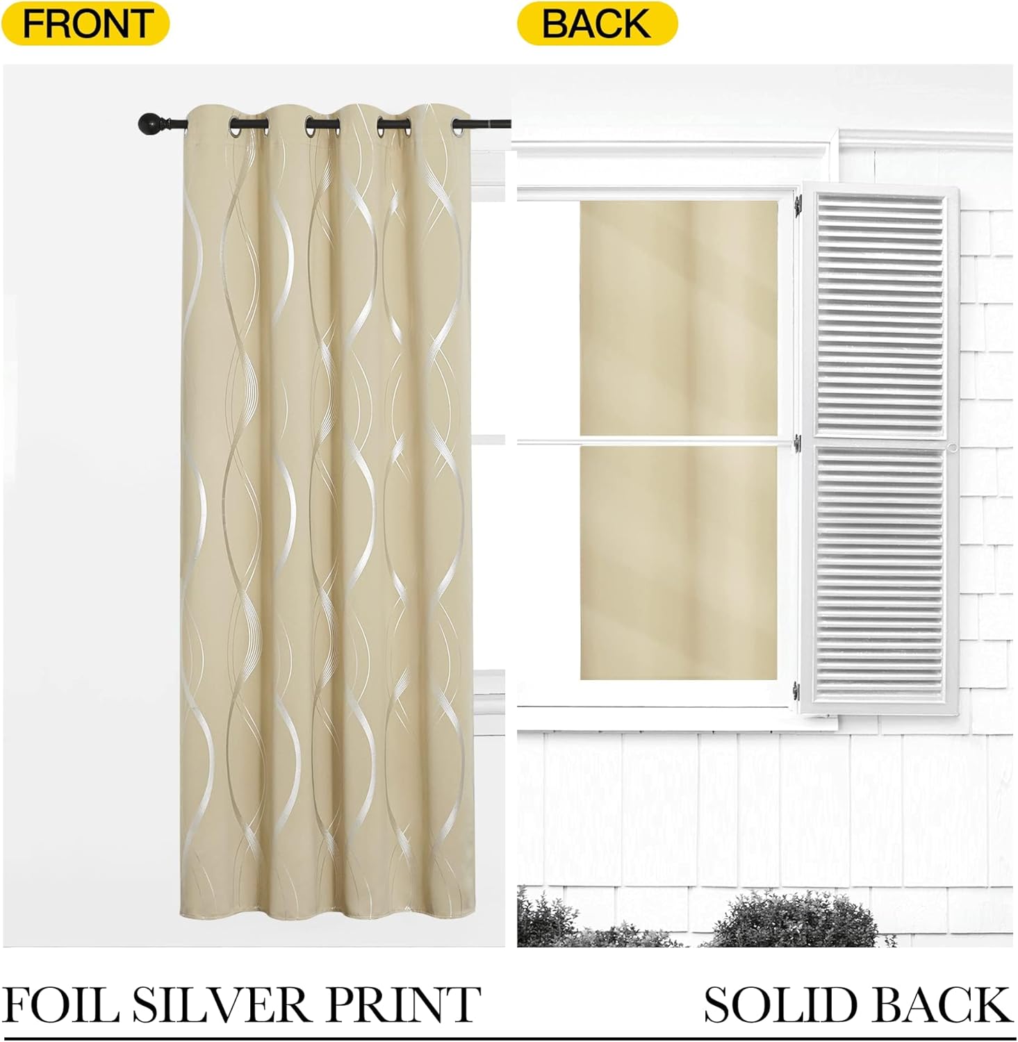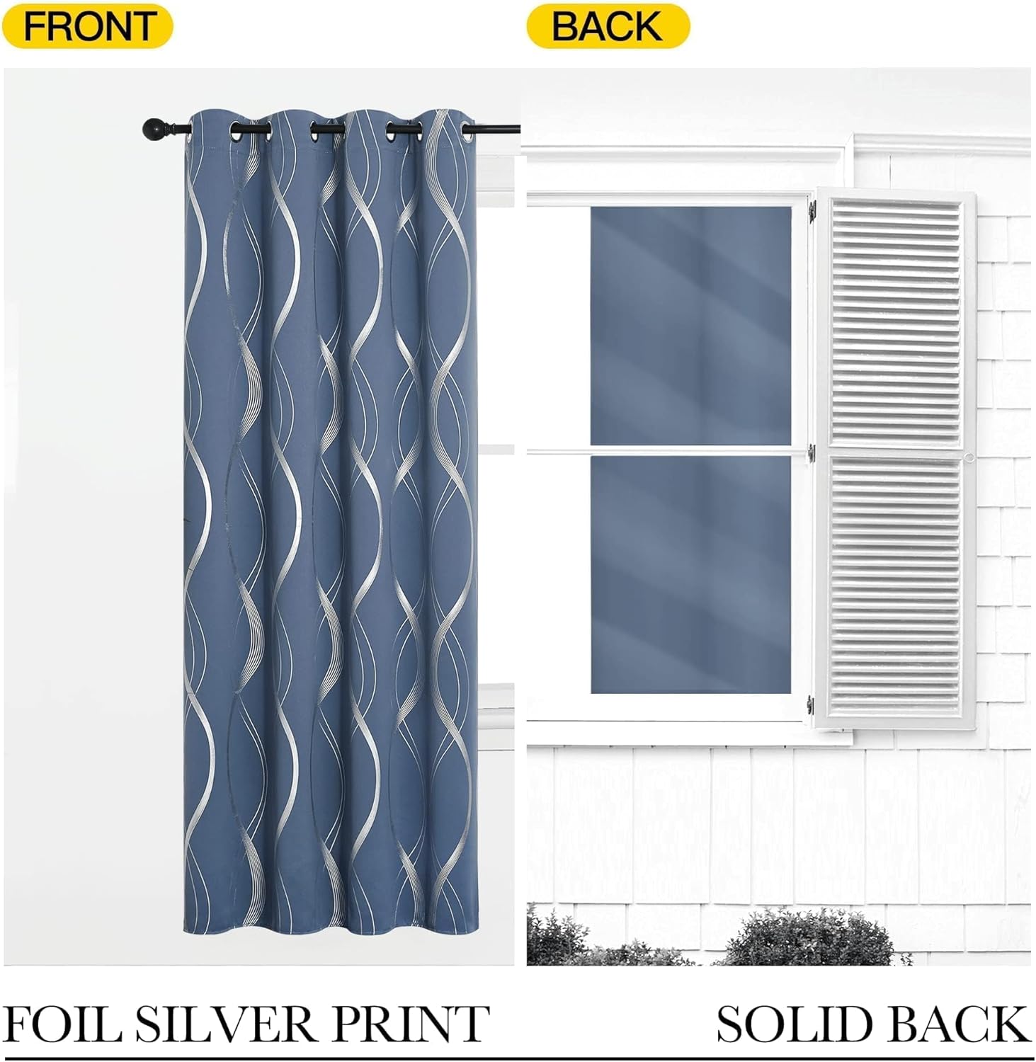 • FOIL PRINTED: The classic silver striped wave lines pattern on the background gives the curtains an exclusive elegant look. With digital print technology, beautifully printed with the vibrant design shown.