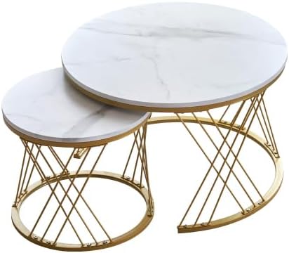 OSJ Center Table, Nesting Table, Low Table, Nesting Tabletop, Marble Style, Set of 2, Side Table, Round, Round Table, Low Table, Scandinavian Style, Living Alone