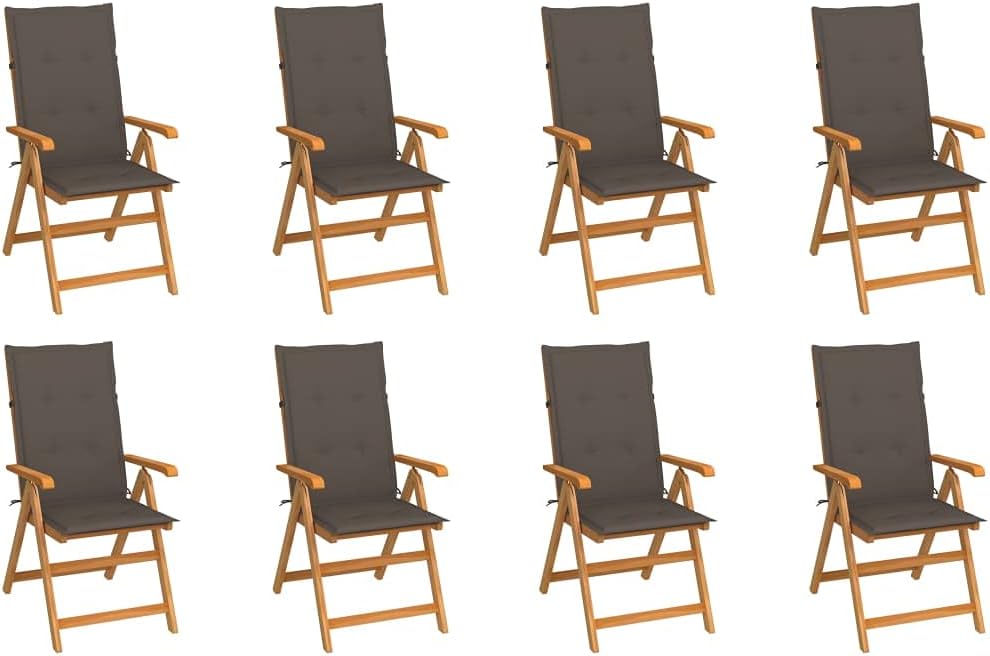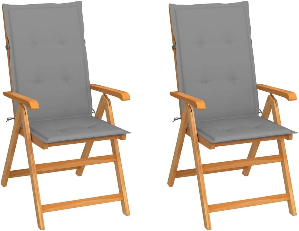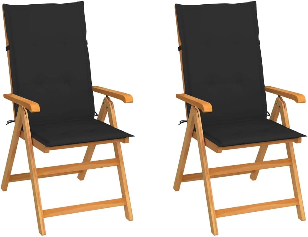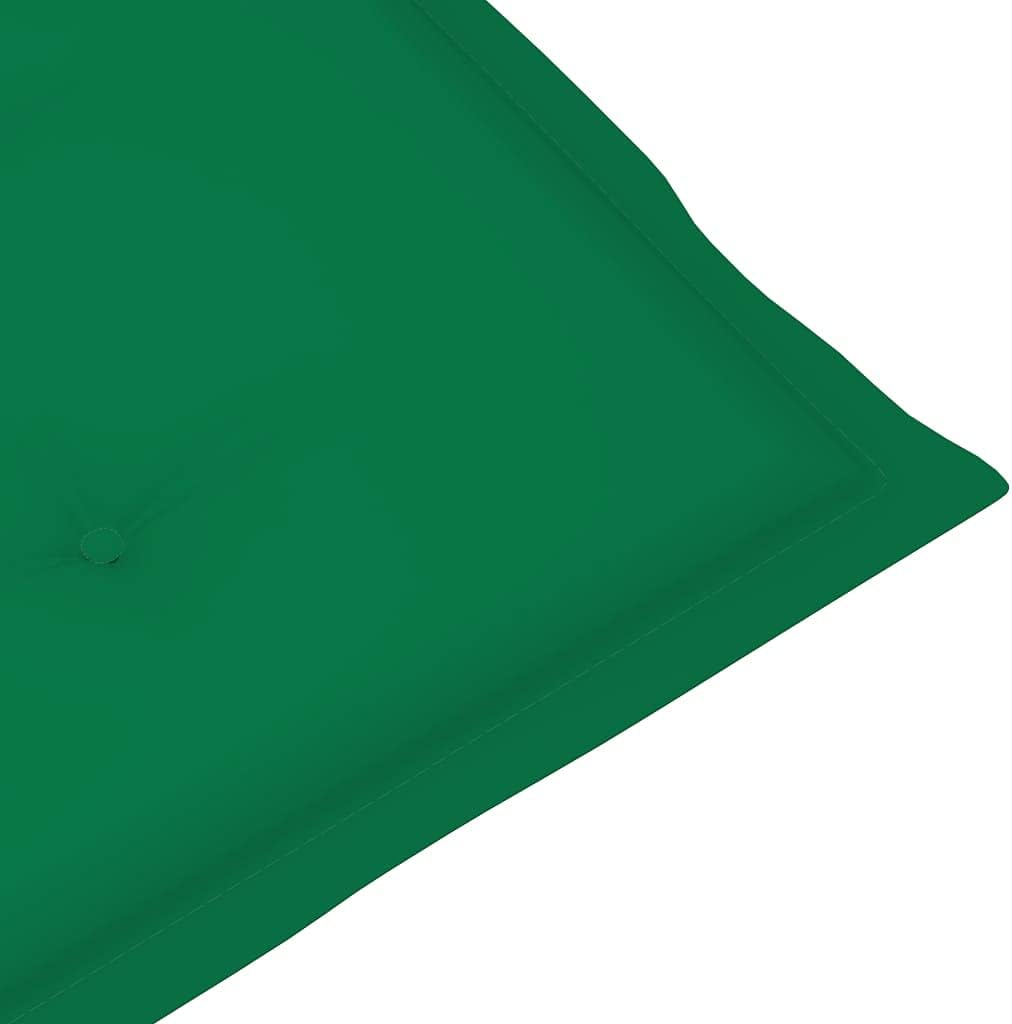This wooden patio chair set is an excellent addition to your garden or patio. It is ideal for relaxing, chatting with family and friends or just enjoying the weather.Constructed from extremely durable teak hard wood, this piece of teak furniture has been seasoned, kiln dried and then fine sanded to give a very smooth appearance. Teak wood is known for its exceptional strength and weather resistance, making it far more suitable for patio furniture than any other kind of wood. Teak wood is the perfect choice if you want to purchase a long lasting piece of patio furniture.The chair's backrest can be adjusted in 7 reclining settings, so you can always find the most comfortable position. It is also lightweight, making it easy to move around. The outdoor chair can also be folded to save space when not in use. The included cushion is more than a practical addition; it also has a decorative function.Cushion color: GreenMaterial: Fine sanded teak hard wood with waterbase finishCushion material: Fabric (100% polyester)Dimensions: 22.4" x 28.1" x 42.9" (W x D x H)Seat width: 18.7"Seat depth: 15.7"Seat height from the ground: 17.7"Armrest height from the ground: 25.2"Cushion dimensions: 47.2" x 19.7" x 1.2" (L x W x T)7 reclining positionsFoldableDelivery contains:2 x Garden chair2 x Cushion