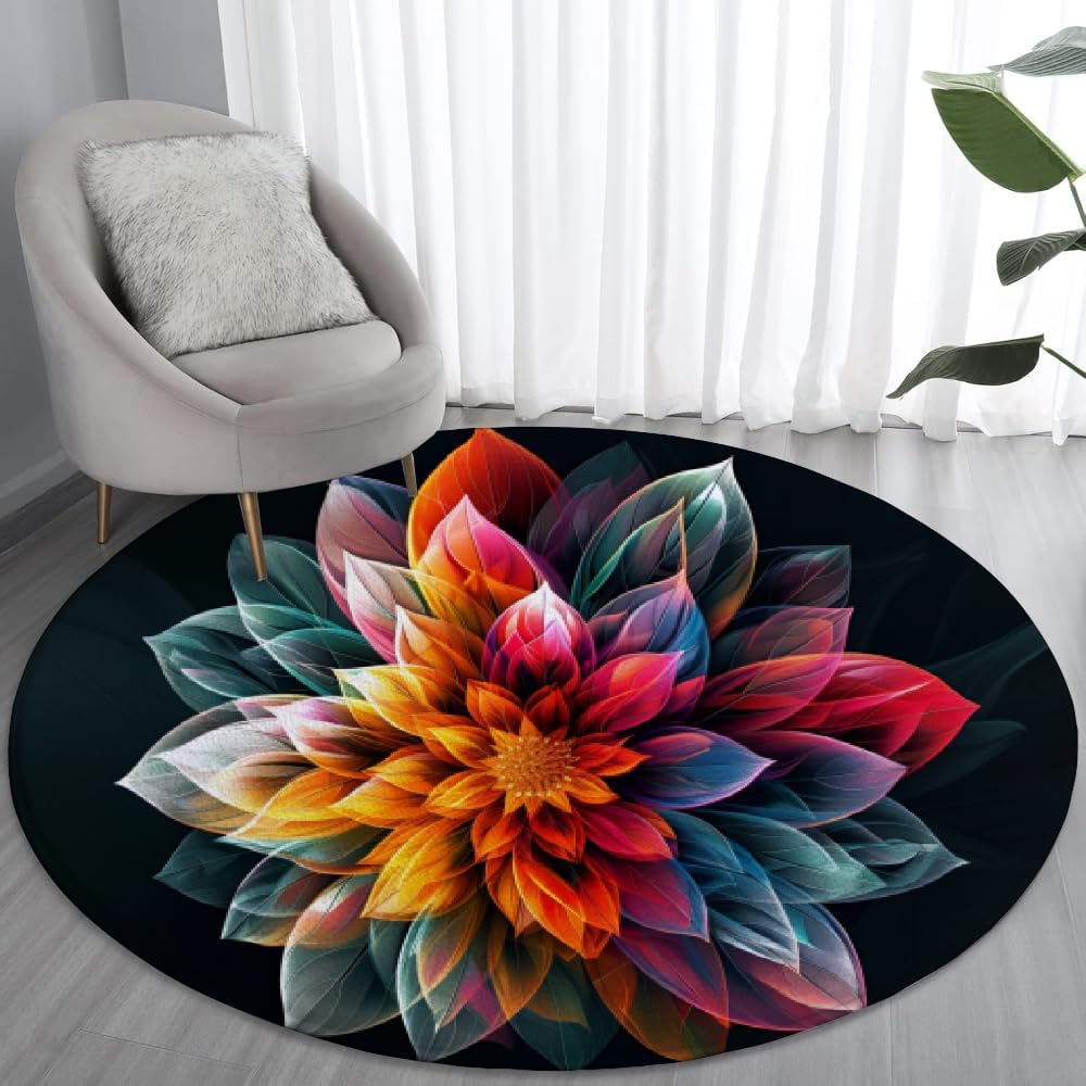 Circle Design for Harmonious Spaces 3 ft Round Rug (36") with seamless edging, ideal for small/medium spaces Curved silhouette eliminates sharp corners, creating a safer play area for kids and pets Space-saving shape effortlessly complements modern, Scandinavian, or bohemian decor stylesPremium Multi-Layer Construction✓ Ultra-soft flannel surface: Skin-friendly texture for barefoot comfort✓ Resilient sponge core: Rugs for enhanced cushioning✓ Non-slip rubber backing: Diamond-pattern grip prevents accidental slipsStain Resistance & Easy Maintenance→ Machine washable design maintains vibrant colors after repeated cleaning→ Quick-dry feature allows reuse within 3 hours (air dry recommended)Versatile for Every Lifestyle☆ Baby Crawling Mat: Safe and Reliable materials☆ Pet-Friendly Flooring: Scratch-resistant surface withstands daily paw activities☆ Yoga & Meditation Zone: Anti-slip base keeps stable during workoutsYou Can Trust Reinforced lock-stitch edges prevent fraying Resistant fibers maintain color integrityUsage Tips:① For first-time installation, lay flat for 24 hours to restore original shape② Rotate rug every 3 months to ensure even wear③ Use rug pad for extra cushioning on hardwood/tile floorsPackage Includes:1x Non-Slip Round Rug
