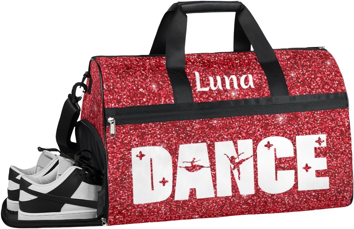 OMFUNS Personalized Sport Duffel Bag for Boys Girl Women Men, Custom Name Gym Bag with Shoes Compartment Dance Bag Yoga Overnight Weekender Bag Size 19.7"L * 9.9"W * 13"H, weigh 1.6lbs. Lightweight and easy to carry. Material The sports gym bag is made of high-quality and durable waterproof polyester fiber fabric, the sturdy polyester shell makes this sports bag very suitable for long-term travel use. Occasion Gym dance bags are perfect for activities such as exercise, travel, sports, tennis, basketball, yoga, fishing, hunting, cycling, gym, yoga, beach, swimming pool, camping, practice days, or weekend trips. Care Method Hand wash only. Not machine washable. You can use a damp cloth or sponge to wipe areas with stains. If there are obvious stains, a little soap and water can be used to remove the stains, and attention should be paid to cleaning the soap thoroughly. After cleaning, air dry naturally. Do not bleach. Do not use bristles or other objects to forcefully brush the backpack. Perfect Gift A personalized sports and fitness bag is the perfect gift for family, children, and friends on holidays such as Christmas, Birthdays, Valentine's Day, and more. After-sales If you have any questions, please don't hesitate to let us know at any time, and we will reply to you within 24 hours.