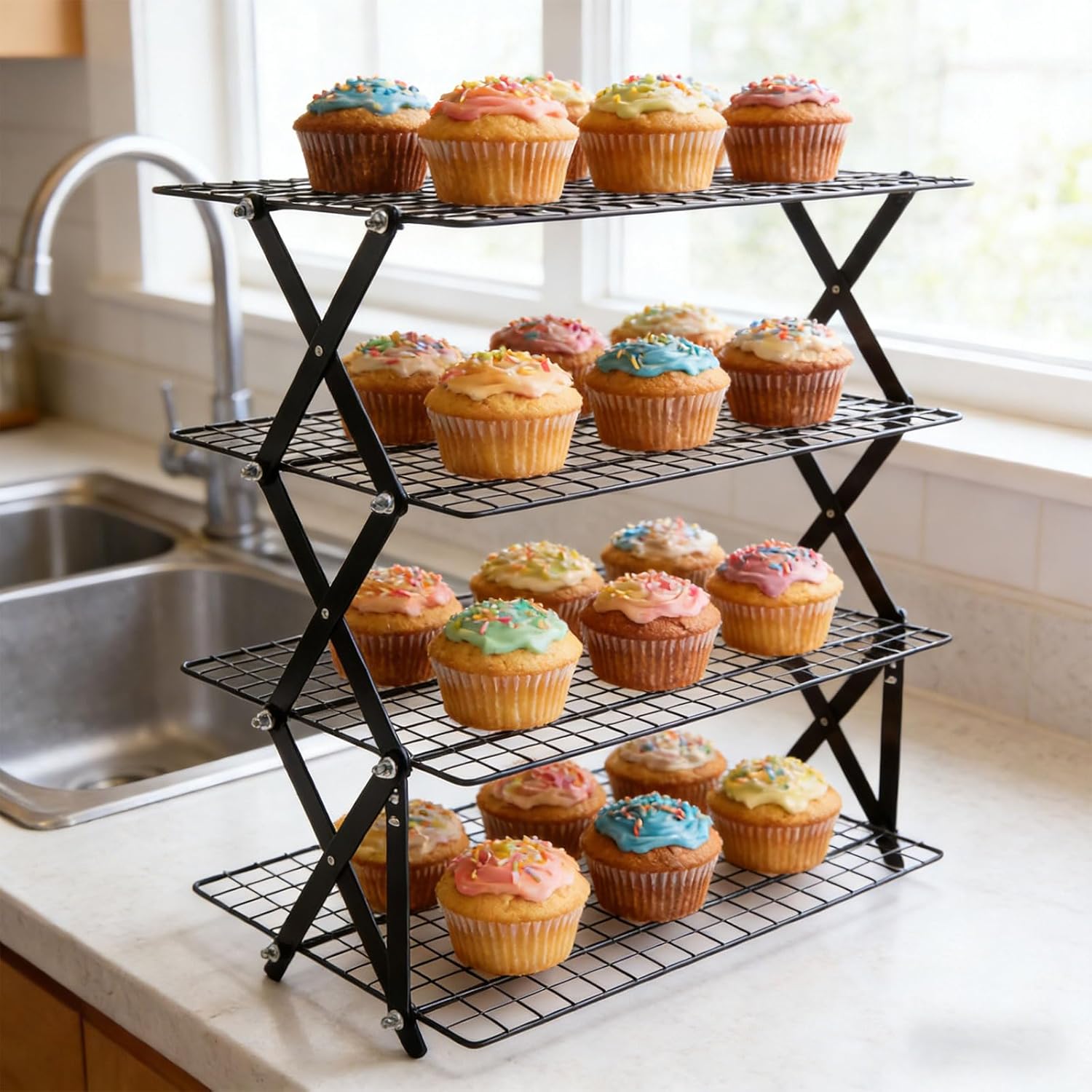 • Space Saving Pliable Planumberebog: This 4 rank refrigerating rack features a innovative pliable structure that collapses completely flat for compact storage. It easily accommodates into cabinets, drawers