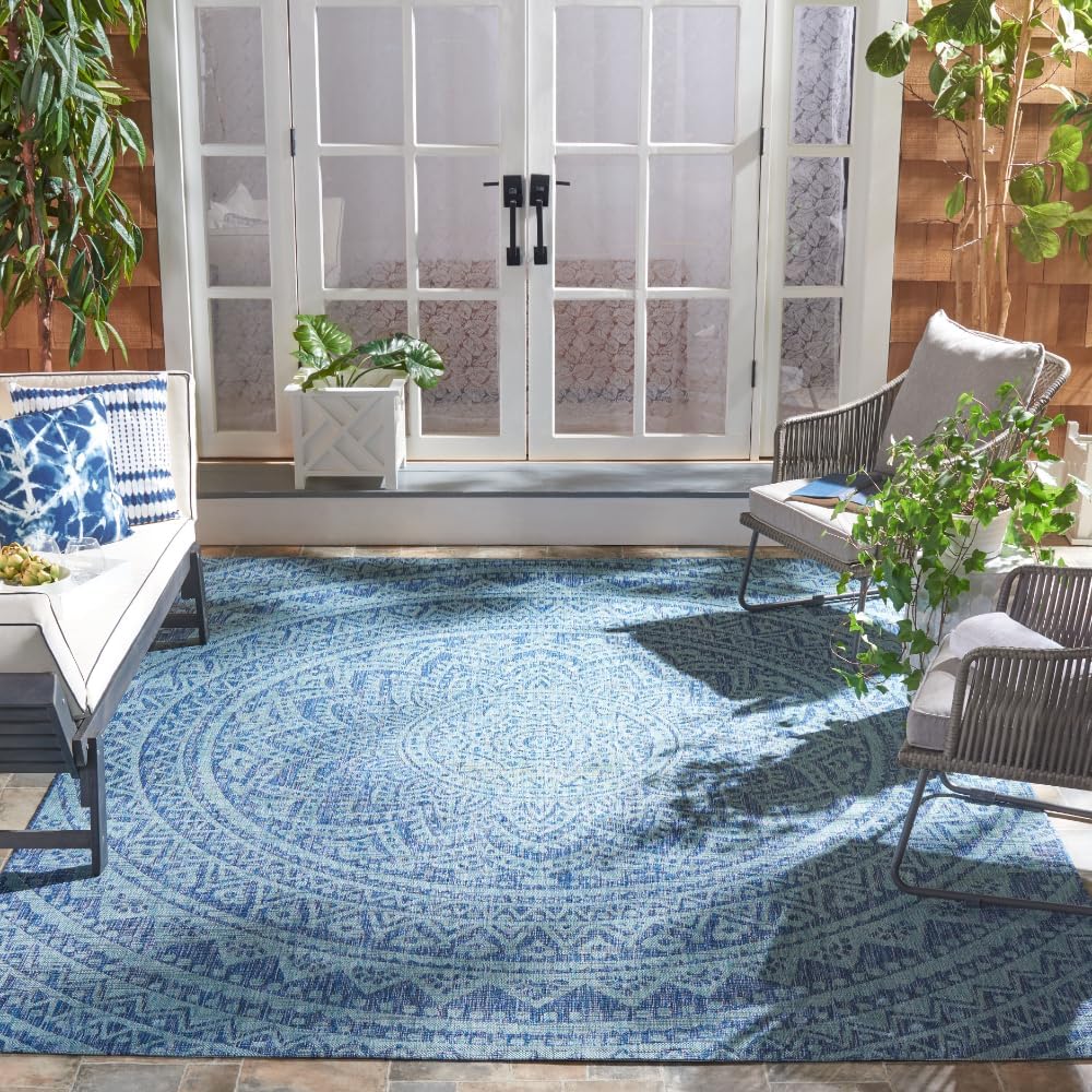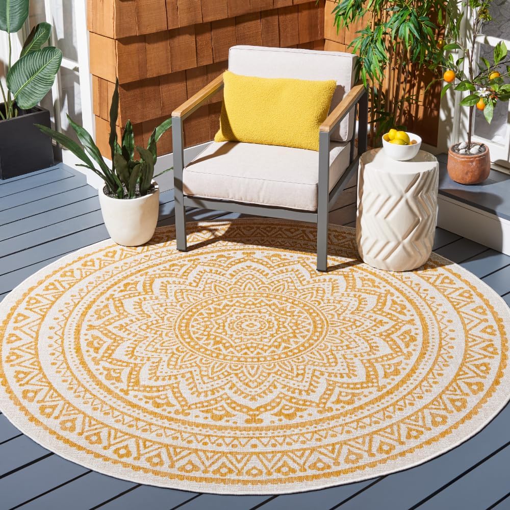SAFAVIEH Courtyard Collection 6'7" Round Light Grey/Black CY8734 Indoor/ Outdoor Waterproof Easy Cleaning Patio Backyard Mudroom Area Rug