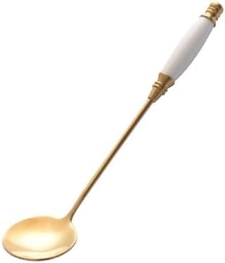 Silverware Flatware Set, 1/4/6/8/10/12 Pieces Creative Stainless Steel Long Handle Stirring Spoon Household Afternoon Tea Drink Stirring Honey Spoon Dessert Coffee Spoon(Green Gold,12 Piece