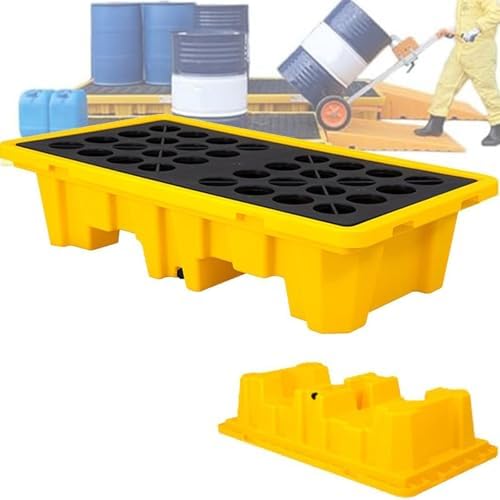 Stackable Spill Containment Pallet, Modular Industrial Polyethylene Tray with Nestable Grating for Garage & Workshop Storage, Heavy-Duty Spill Platform