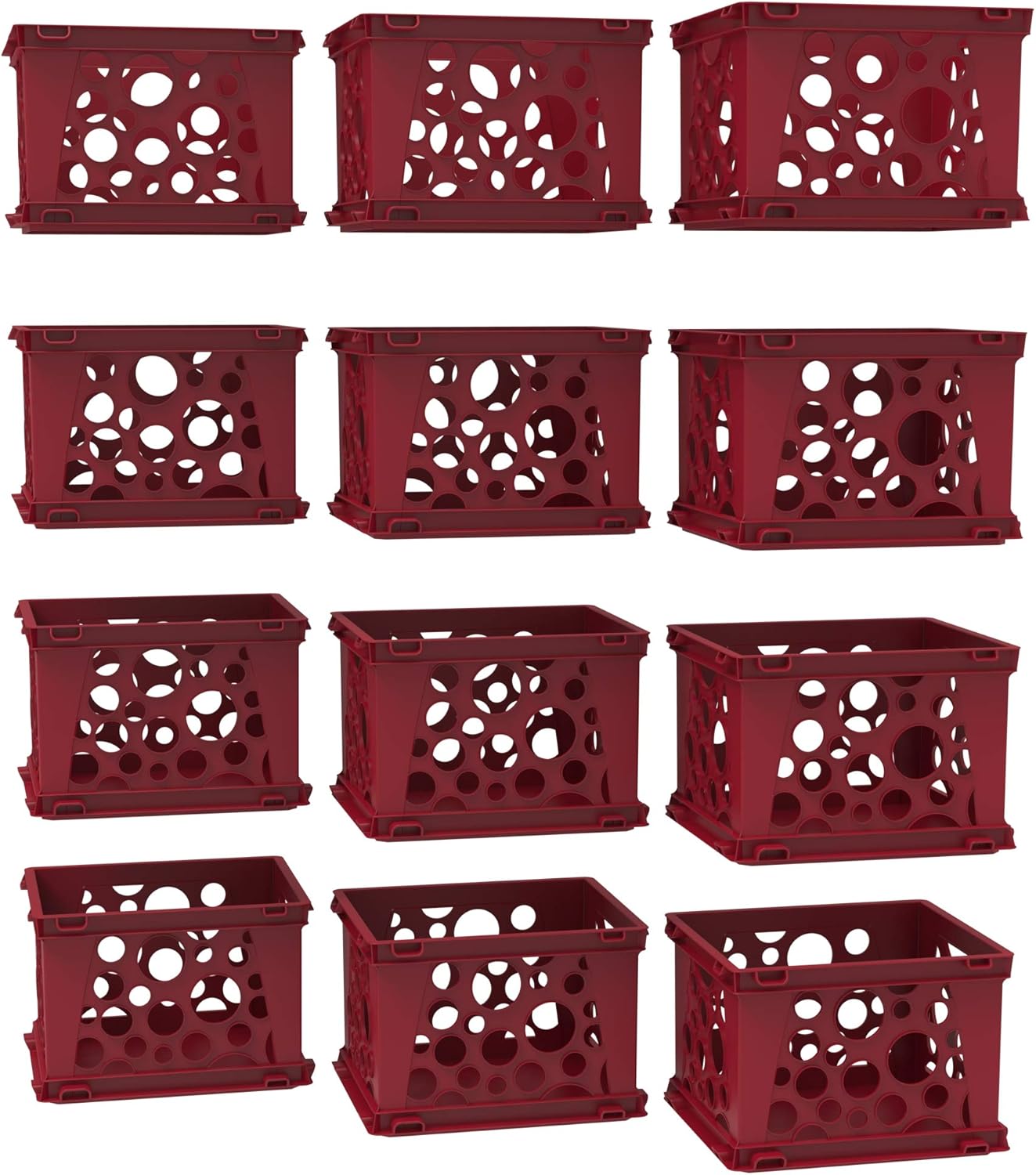 Storex Mini Crates – Stackable Small Storage Crates for Desktop Organization, 9 x 7.75 x 6 inches, School Blue, 12-Pack (61595U12S)