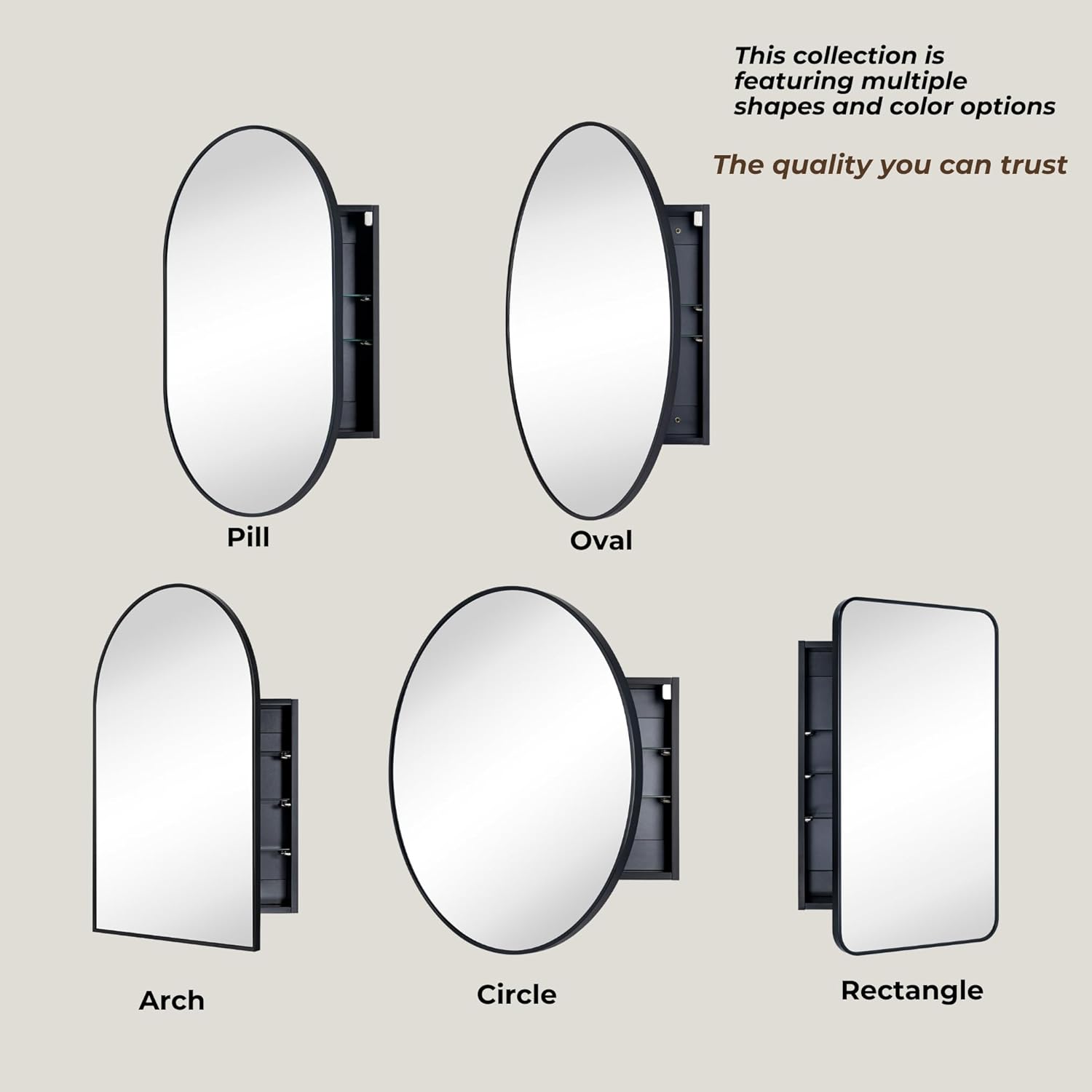 | Additional Features | Magnetic Closure, Premium Metal Frame, Silvered Glass, Tempered Adjustable Glass Shelves |