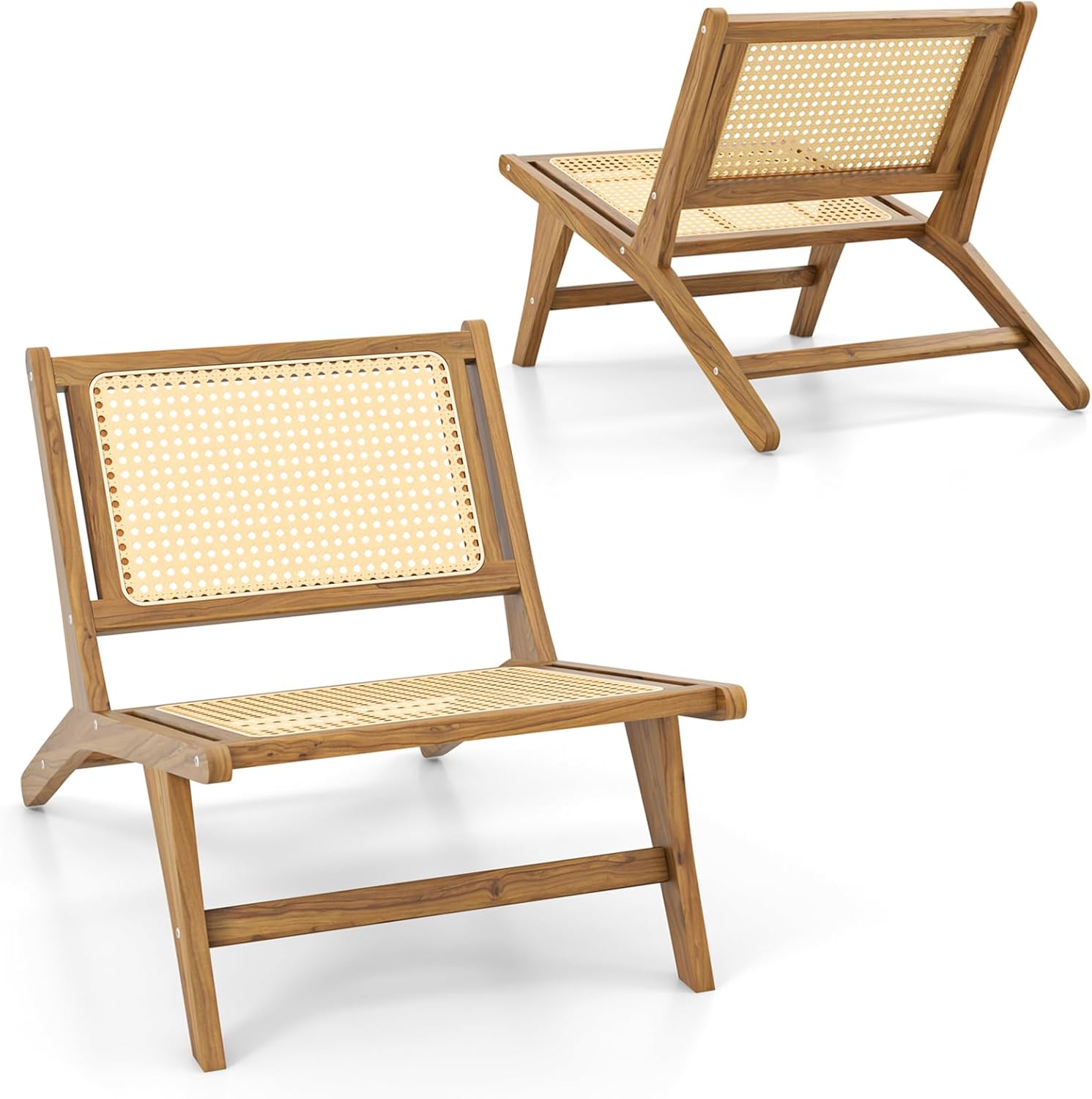 DescriptionThis rattan chair will be a great addition to your indoor space!The rattan backrest and seat bring natural beauty while promoting breathability. The solid teak wood construction provides a sturdy structure for a comfortable seating experience. Its ergonomic reclining design enhances comfort, making it perfect for lounging and reading. Ideal for indoor spaces, such as the living room or bedroom, this versatile chair is a perfect addition to your home. Note: This chair should not be exposed to rain and is not suitable for outdoor use.FeatureMade from Indonesian teak for long-lasting serviceFeatures handwoven rattan backrest and seatThoughtful design with smooth round edgesReliable stability with screw connectionsEquipped with ergonomic backrest for ultimate comfortEasy to assemble with included instructions and hardwareSuitable as an additional seating for indoor places Note: This chair should not be exposed to rain and is not suitable for outdoor use.SpecificationColor: NaturalMaterial: TeakOverall Dimension: 36.5" x 24" x 25.5"(L x W x H)Seat Dimension: 24" x 18.5"Weight Capacity: 220 lbsNet Weight: 14 lbsPackage includes:1 x Teak Wooden Chair1 x User Guide