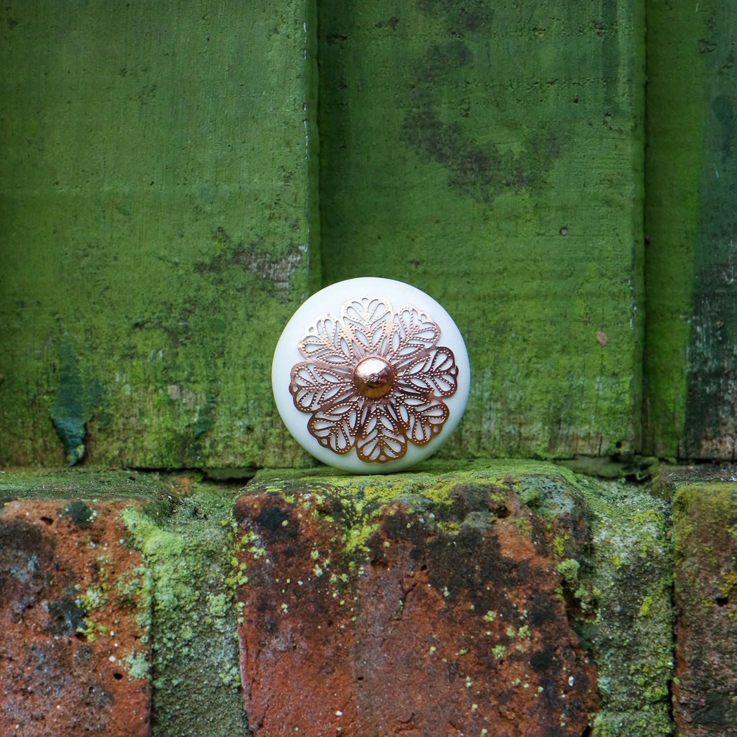 TRINCA-FERRO Set of 12 Door Knobs Interior/Exterior Knobs for Drawer Pull Cabinet Dresser Drawers Decorative Modern Ceramic Knobs for Kitchen Bedroom Bathroom : Rose Gold (Filigree)