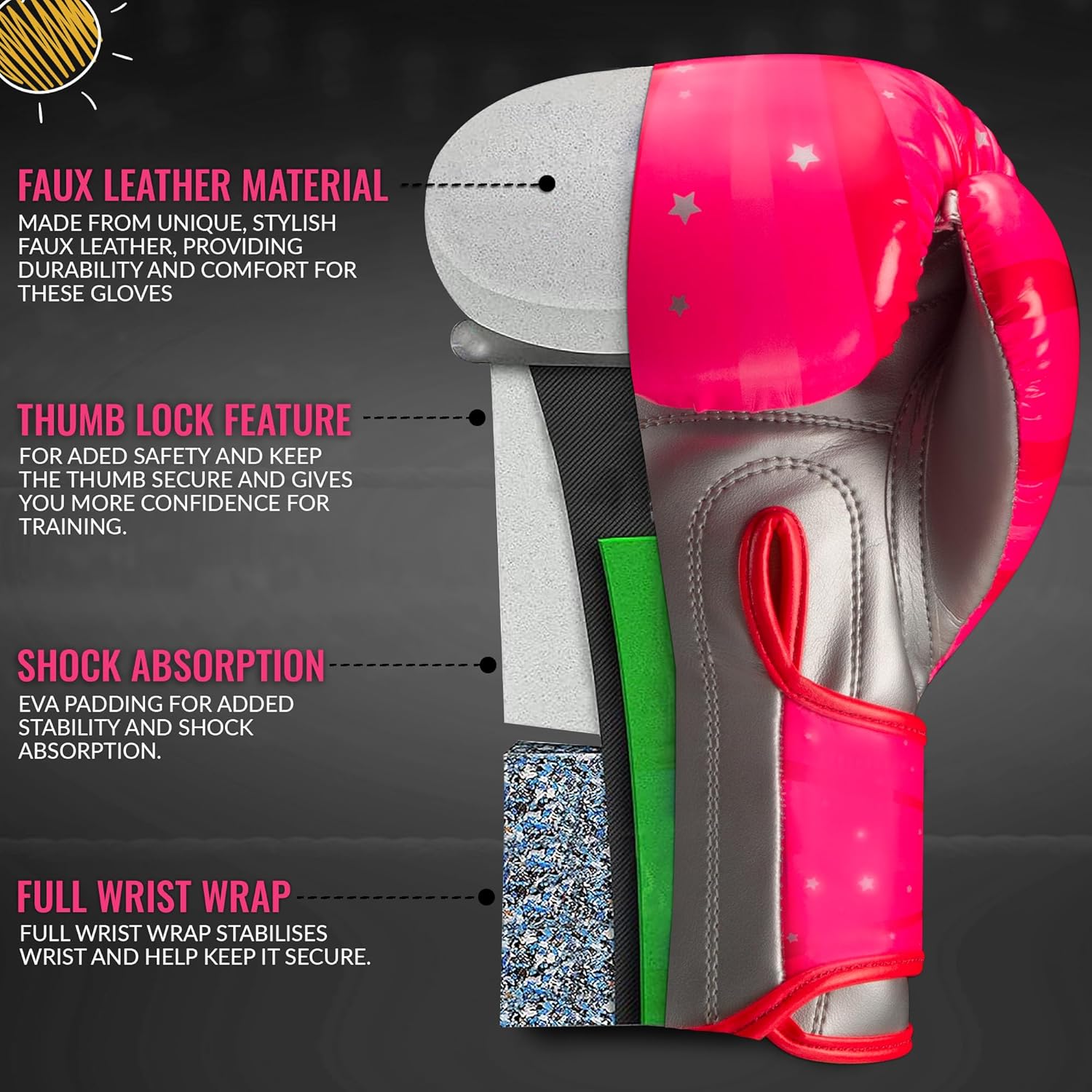 • Breathable and Sweat-Wicking Design – Designed to keep you comfortable during long sessions, the boxing inner gloves offer breathable, sweat-wicking fabric, while the wrist straps with adjustable closures ensure a secure and stable fit for both men and women.