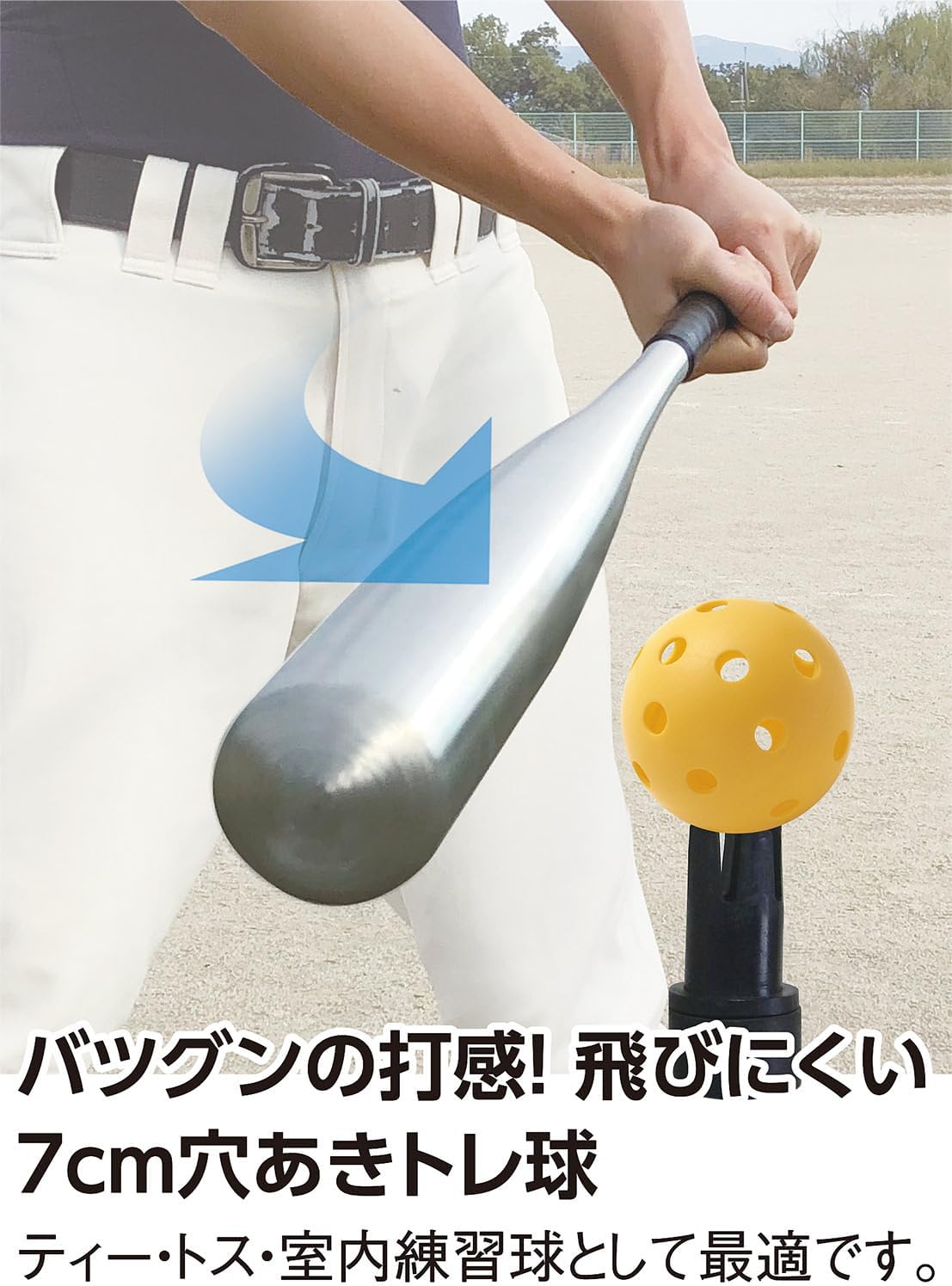 Perforated ball that won't fly out even with a full swing. Great for tee and toss batting and indoor practice balls with great feel.