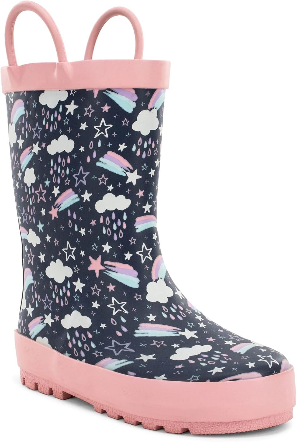 Green and yellow Monster trucks decorate the upper, the dark background contrasts with the trucks. The splatters in the background give extra flair. The lining has a striped printed pattern that contrasts well with the Monster truck pattern. The 4mm rubber stripes on the outside of the boot and the insole have the same pattern. The handle is molded. The texture of the handle resembles that of the tread of a tire. This gives the boot an interesting structure and makes the boot a cohesive unit.The printed pattern, polyester/cotton lining, and waterproof qualities make this a go-to boot! established in 1891, Western Chief made boots that could hold up to the harsh weather conditions of the alaskan gold Rush. Today, Western Chief creates family-friendly footwear options for outdoor wear. We strive to create a boot that each individual person will love. Some of our footwear offerings include lighted rain boots for children, garden clogs for women, and work boots for men. For those hot summer days and perfect spring weather, we offer fun water-resistant sandals! all lifestyles can be accommodated when using our Western Chief boots. You will love our affordable, functional rain wear we provide.