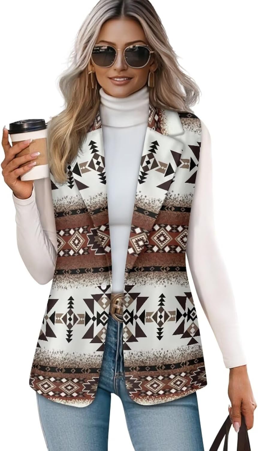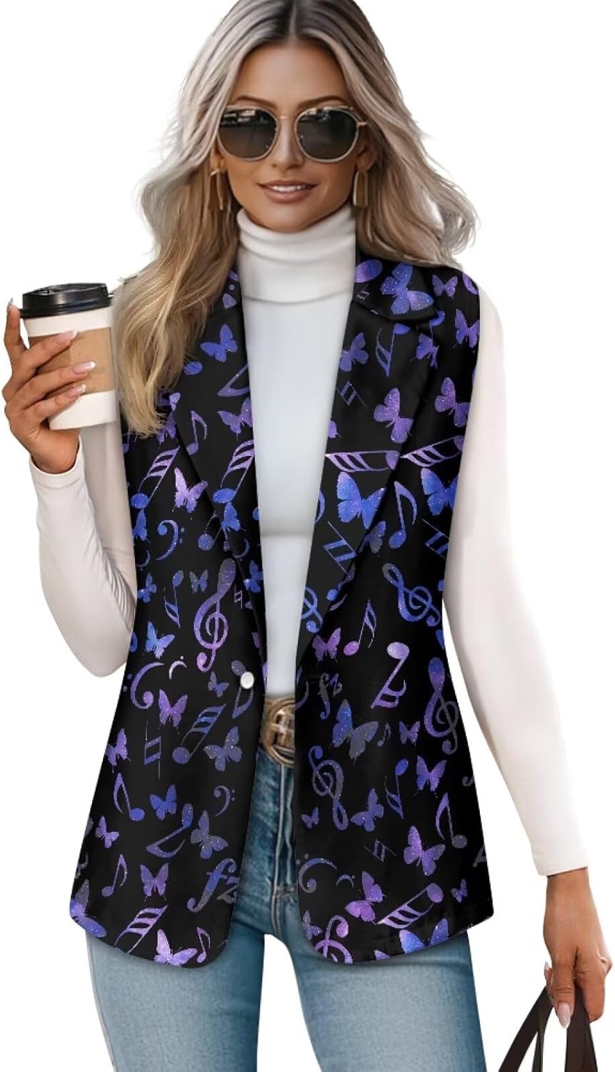 -The fabric is incredibly soft and smooth against the skin, providing a gentle touch. It's also lightweight and breathable, ensuring you stay cool and dry throughout the day, whether you're at work, running errands, or enjoying a social gathering -Women vest top, notched lapel collar, one button, v neck, sleeveless, dressy tank top, women vests fashion casual, loose fit -We offer this women's vest in an extensive range of sizes, including S, M, L, XL, XXL, 3XL, 4XL, and 5XL. This allows you to find the perfect fit that flatters your figure and provides maximum comfort -Business Casual Tops For Women Work Office Blazer Jacket Professional-The overall style of the blazer is loose and casual, which applies to a wider range of people with a bit of oversize style. Very suitable for work and daily travel -The stitching is neat and neat, making the suit vest durable, comfortable, and exquisite, with a V-neck design - Various stylish designs for you to choose, such as leopard, cow, flower, tie dye, color plaid, tribal stripes,cute animal 【 Special note 】 1.It is recommended to wash by hand with cold water. Do not soak for a long time, do not bleach 2.Due to different measurement methods, it is normal for the size data to have an error within 1-2cm