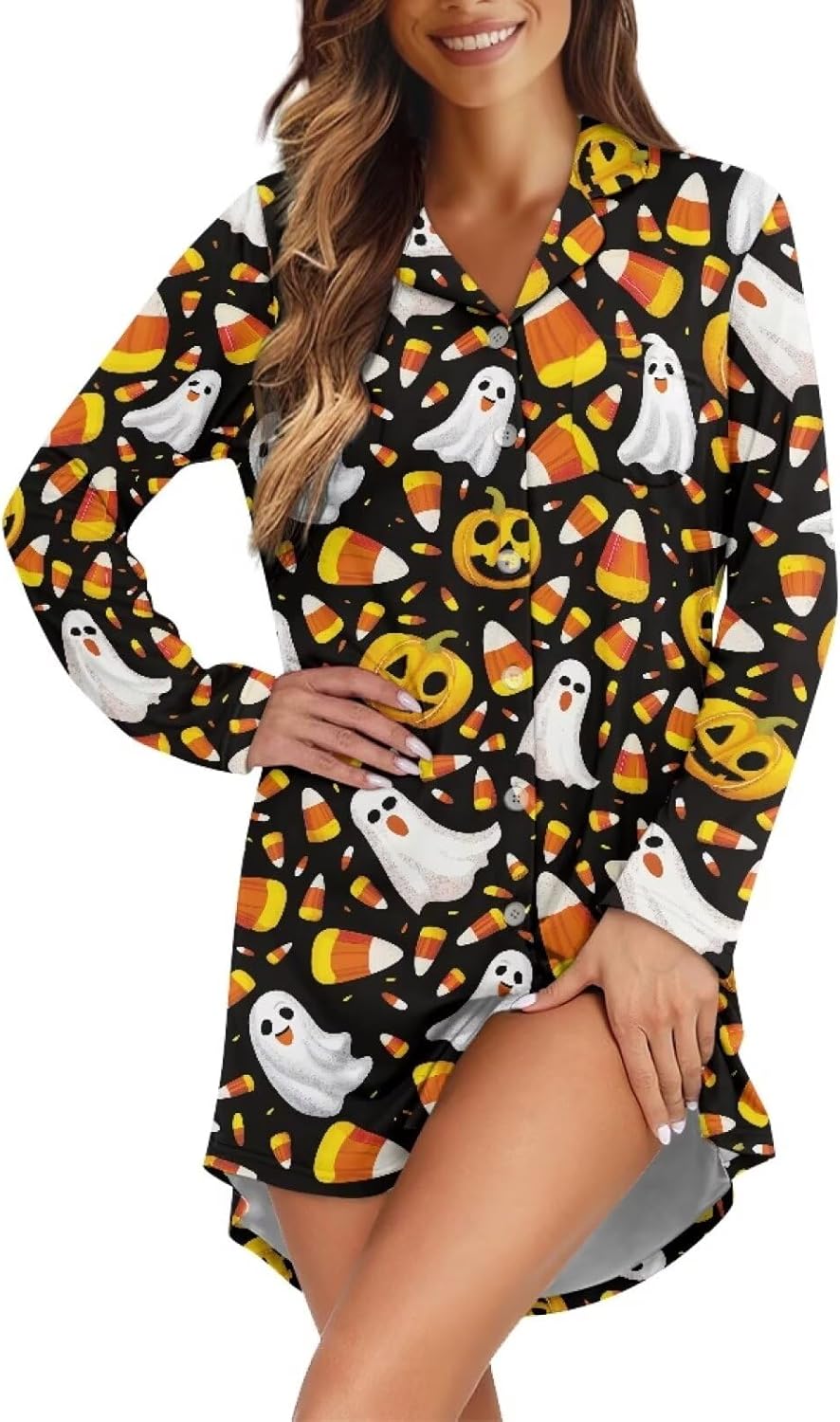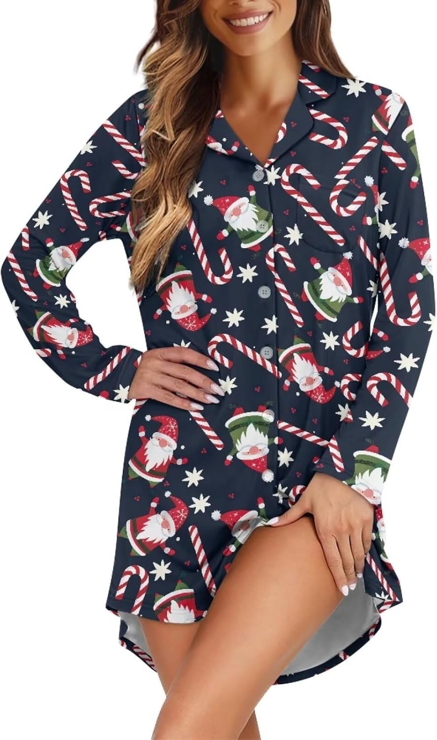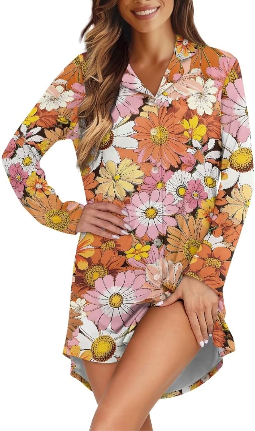 Spowatriy Women's Long Sleeve Button Nightdress : -Womens casual nightgown,v neck boyfriend nightshirt,skin-friendly,not easy to fade and shrink.Soft and comfortable, lightweight and breathable. -Long sleeve,button pajama dress sleepshirt for women,lapel v neck,classic design loungewear with breast pocket.Everyday Style,suit for most body curves and all seasons. Also can be nursing nightgowns/maternity nightgowns. -Various eye catching prints patterns for you to choose, which will never go out of style.It is a must-have loose full button nightgown for your wardrobe!Make you look more elegant and charming. Size :5 sizes for you to choose:S/M/L/XL/2XL,Please check our size chart and product details carefully before placing an order. Full Button Nightdress Long Sleeve Sleepshirt with Pocket for Women : Suitable for pajama party/ girls day/ honeymoon/ bridal pajamas/ travel/ wedding party/ birthday nightgown/Christmas /New Year/Valentine nightgown/costume party, and daily sleepwear.Easy to put on and take off.Wearing it you will want to start a romantic journey! Welcome to Spowatriy! Choose us and trust us! We have many types of products for you to choose from,If you have any questions about our products, please feel free to contact us. We will spare no effort to solve your problem.