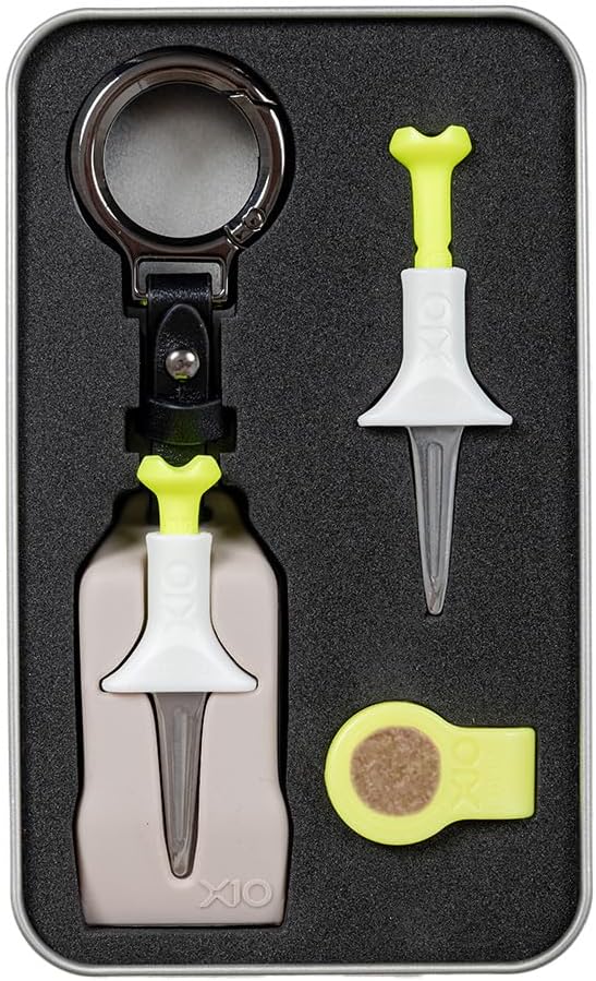 Built for golf precision and comfort, the X10 Golf Tee Set is an innovative product that combines all the features players need in one. Adjustable height from 35-60mm flexible tee supports stable shots without interfering with club swing The tee flexes to reduce drag after impact. Convenient magnetic hat clip holder for quick access while preventing losing tees In addition, it includes the green maintenance features, ball markers, and grip cleaners needed during play. Adopt stainless steel material to ensure durability. It is also equipped with a ball and iron cleaner with a highly elastic silicone brush to support clean play. This multi-functional golf accessory is stored in a compact case, making it portable