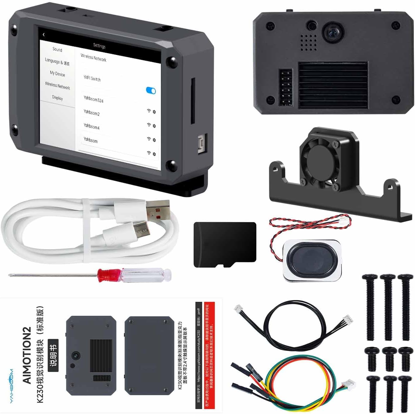 Yahboom K230 AI Development Board 1.6GHz High-performance chip/2.4-inch Display/Open Source Robot Maker Python, Supports AI Visual Recognition CanMV Sensor (with Adjustable Bracket)