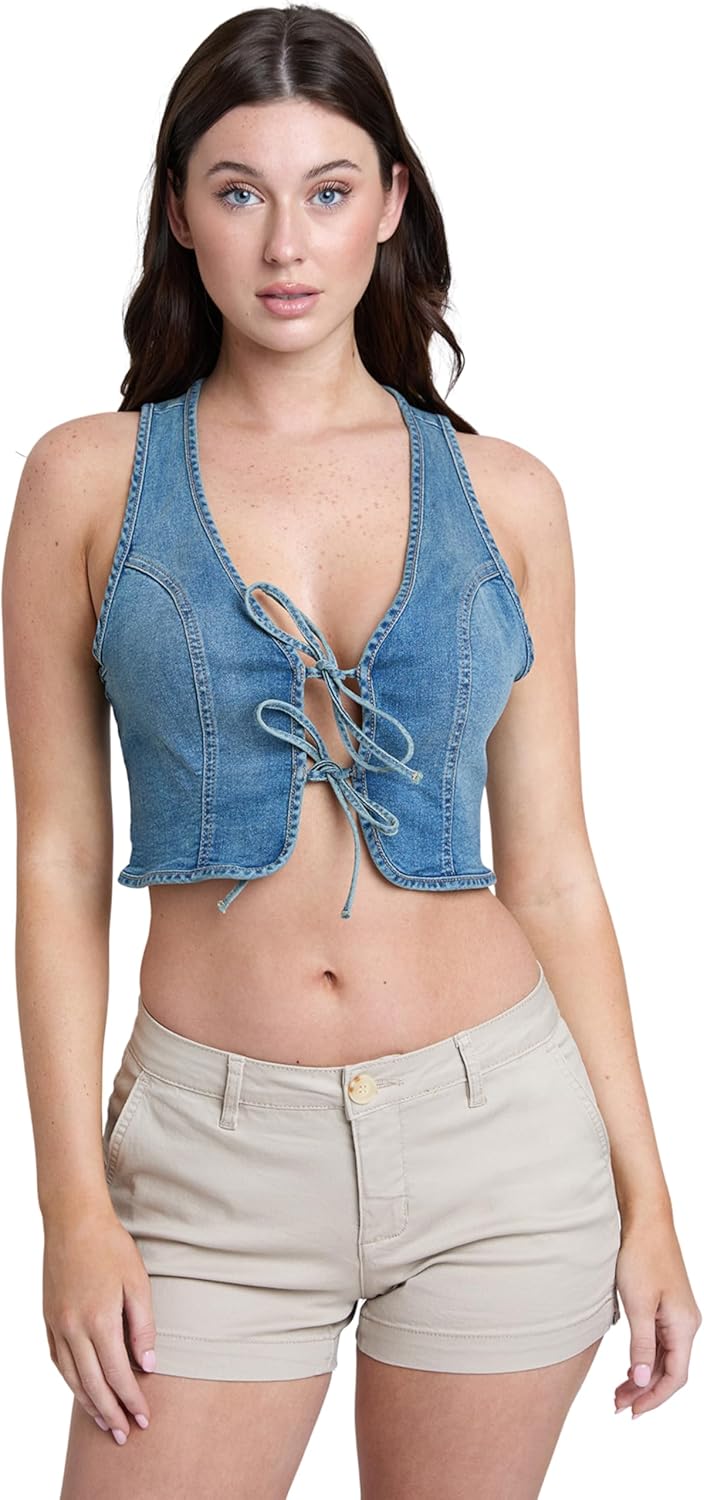 Effortlessly stylish, the Women's Cropped Tie Front Vest is a perfect blend of casual and trendy. Featuring a sleeveless design with a flattering V-neck, this vest is secured with double tie closures for a laid-back touch. The cropped length makes it easy to pair with high-waisted jeans, skirts, or shorts for a versatile look. Made from a soft and stretchy fabric blend, it offers both comfort and style for any occasion.