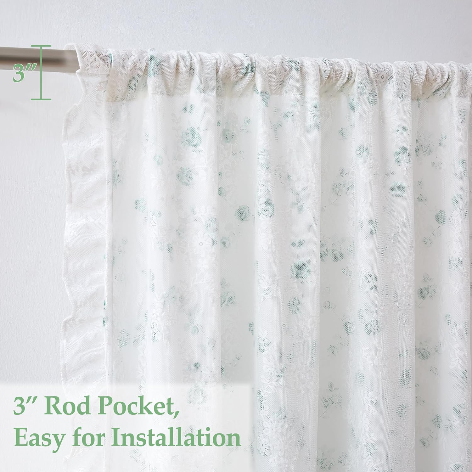 | Theme | Overlay Floral Ruffle Curtains with Vintage Lace for Bedroom Living Room |