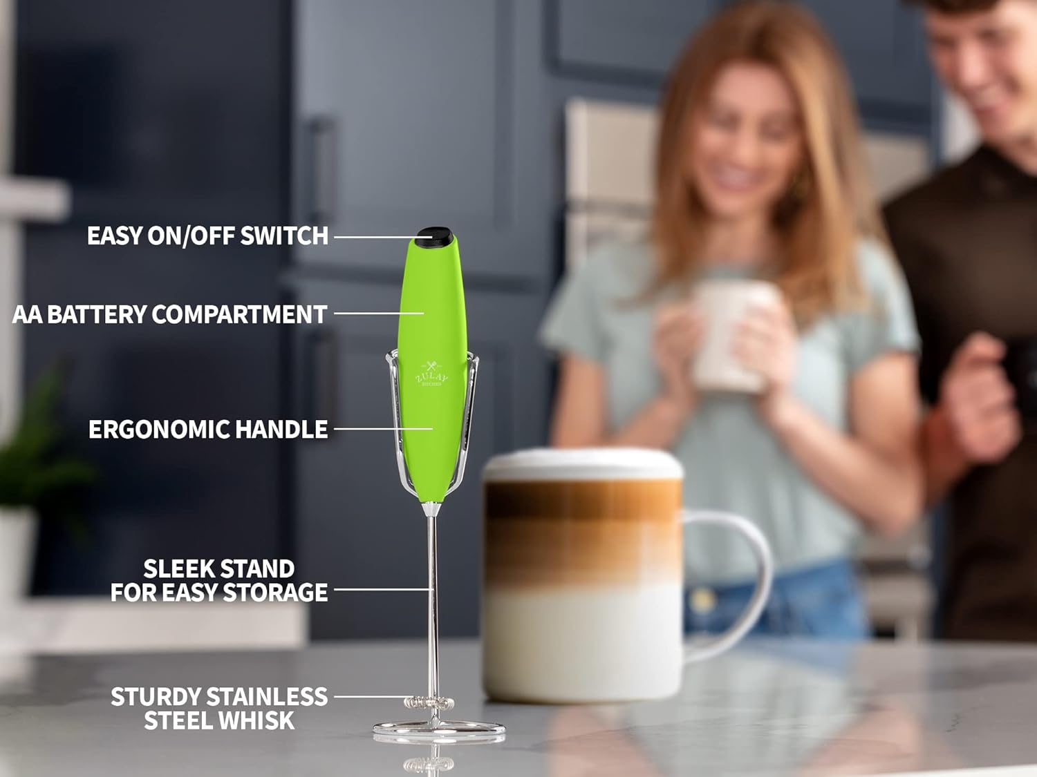 Introducing Zulay Kitchen’s milk frother. This frother is the ideal addition to any kitchen. This frother wand offers a stylish, modern look. This frother handheld complements any countertop. The milk frother handheld is fully waterproof. This milk frother rechargeable ensures easy cleaning and long-lasting durability. This rechargeable frother is a practical choice for daily use. This rechargeable milk frother is great for preparing a morning latte. The drink mixer is also perfect for whipping up a protein shake. This coffee frother can create a frothy topping for your favorite beverage. This frother for coffee can handle it all. This mixer electric handheld features two speed settings. This rechargeable frother handheld allows you to choose the ideal frothing intensity. The first setting of this frother rechargeable setting is perfect for a gentle, creamy froth. The second setting of this frother wand rechargeable ensures you achieve a thick, dense foam. This coffee frother rechargeable was designed with versatility in mind. This frother doesn't just froth milk. This handheld milk frother can be used for a variety of liquids. The coffee mixer can froth alternative milks such as oat, almond, or soy milk. This electric whisk gives you endless options for your favorite beverages. The electric frother is also great for whipping up protein shakes. The handheld frother whisk can also be used for mixing electrolytes. This rechargeable milk frother handheld is a multi-purpose tool for your kitchen. The milk frother electric is rechargeable by USB-C. The milk frother handheld rechargeable is reliable. With this travel frother there is no need to constantly replace batteries. The electric milk frother comes with a stand. The stand for the travel milk frother keeps the hand frother mixer upright and easily accessible. The design of the frother handheld rechargeable makes it easy to store. The hand held frother is built to last.